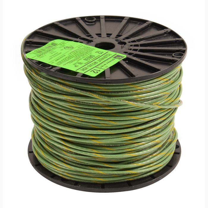 WIRE THHN 12AWG GRN W/YEL STRIPE 500ft SPOOL 600V 19-STRAND BARE COPPER