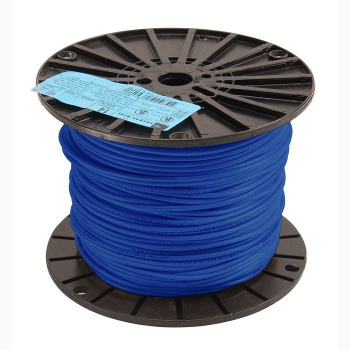 WIRE THHN 14AWG BLU 500ft SPOOL 600V 19-STRAND BARE COPPER