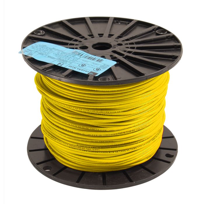 WIRE THHN 14AWG YEL 500ft SPOOL 600V 19-STRAND BARE COPPER