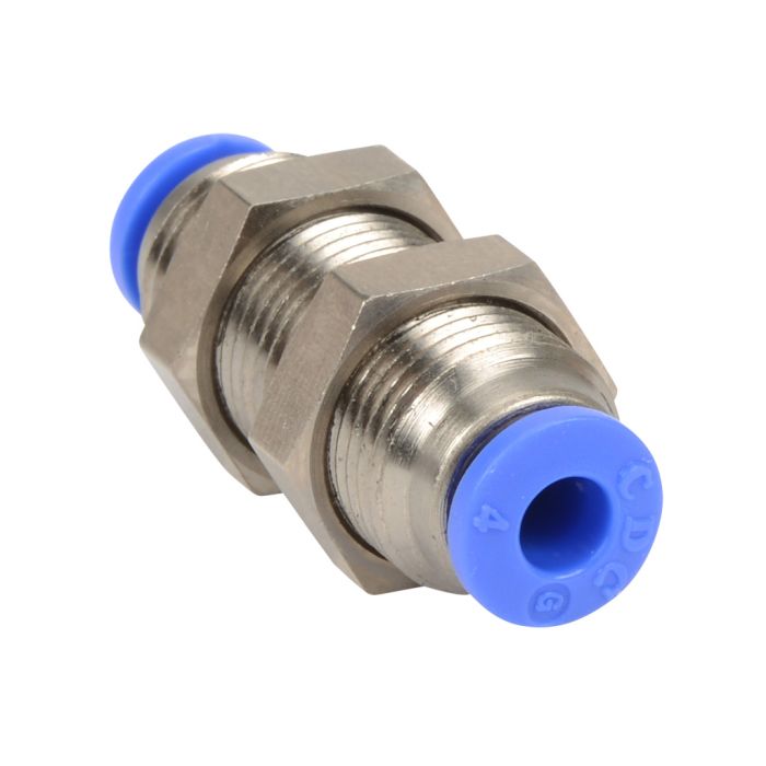 NITRA pneumatic push-to-connect fitting, bulkhead union, nickel-plated brass body, (2) 5/32in (4mm) tube connection(s). Package of 5.