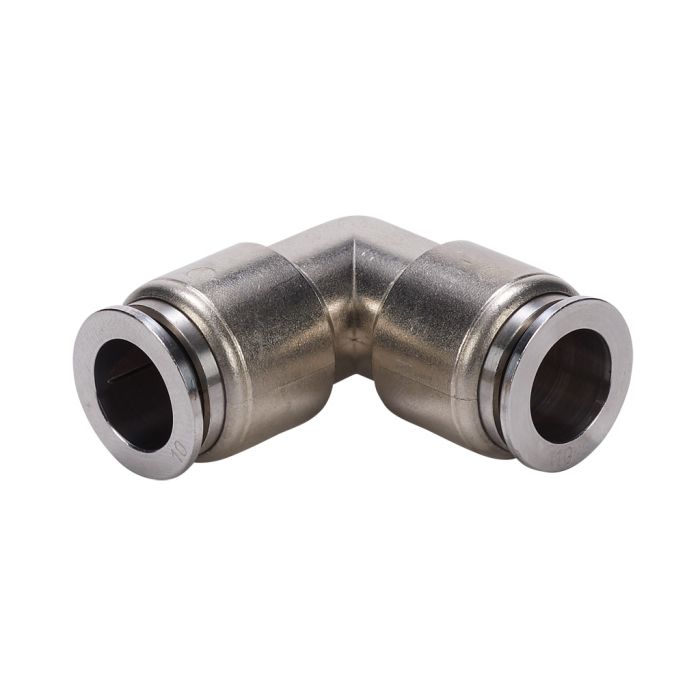NITRA pneumatic push-to-connect fitting, union elbow, 316 stainless steel body, (2) 10mm tube connection(s).