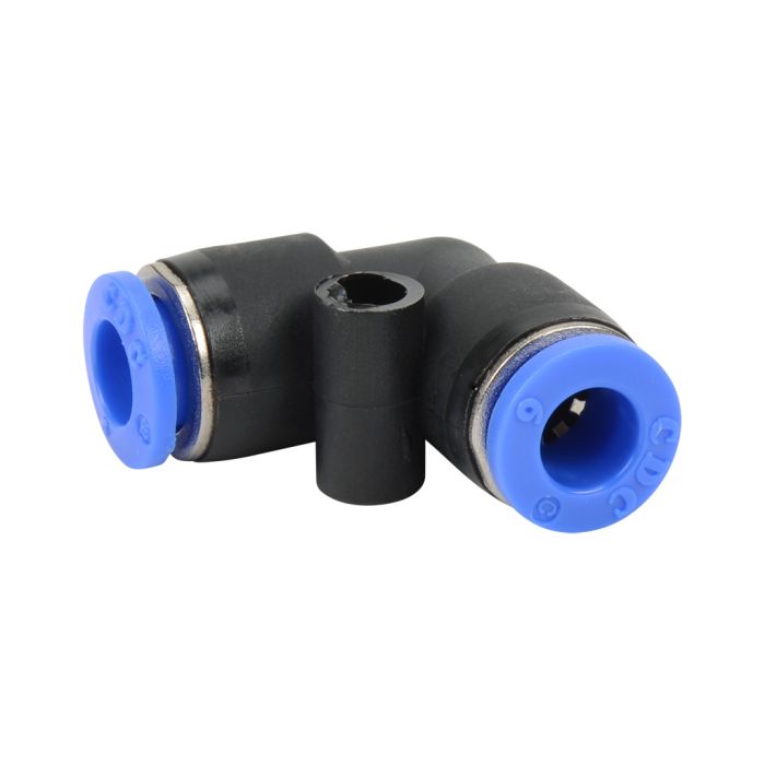 NITRA pneumatic push-to-connect fitting, union elbow, thermoplastic (PBT) body, (2) 6mm tube connection(s). Package of 5.