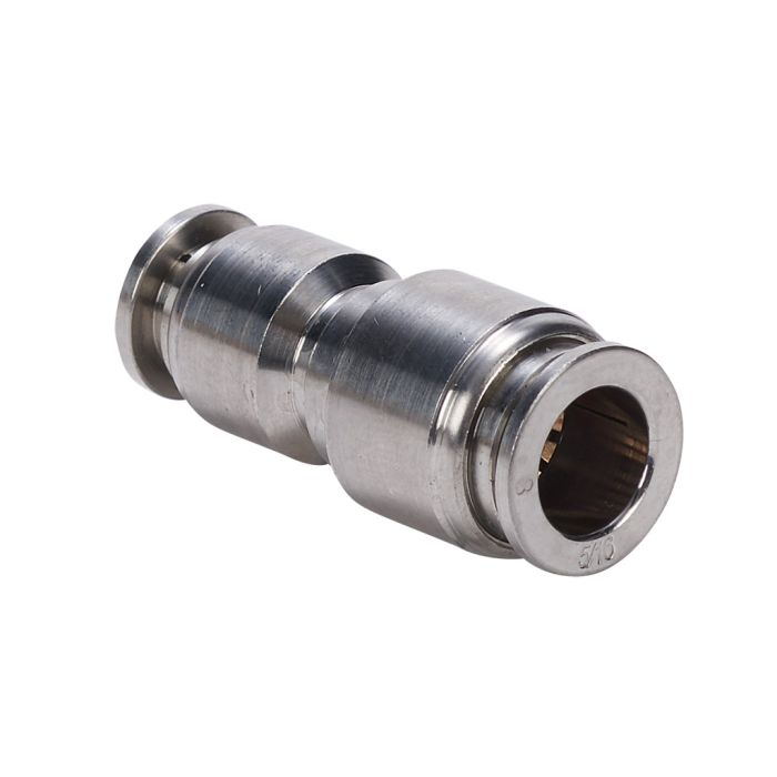 NITRA pneumatic push-to-connect fitting, union straight reducer, 316 stainless steel body, 5/16in (8mm) tube to 6mm tube connection(s).