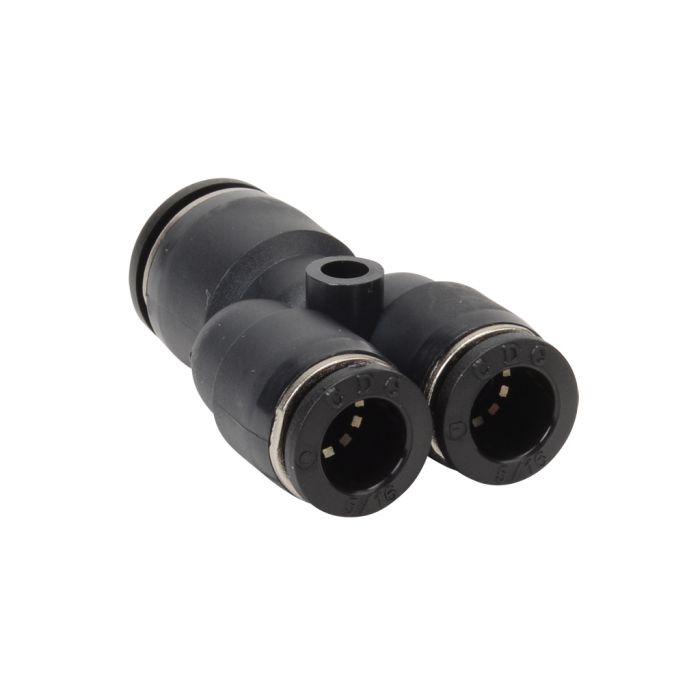 NITRA pneumatic push-to-connect fitting, union Y reducer, thermoplastic (PBT) body, 3/8in tube to (2) 5/16in (8mm) tube connection(s). Package of 5.
