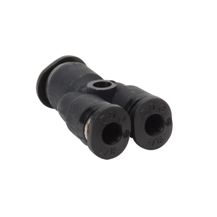 NITRA pneumatic push-to-connect fitting, union Y reducer, thermoplastic (PBT) body, 5/32in (4mm) tube to (2) 1/8in tube connection(s). Package of 5.