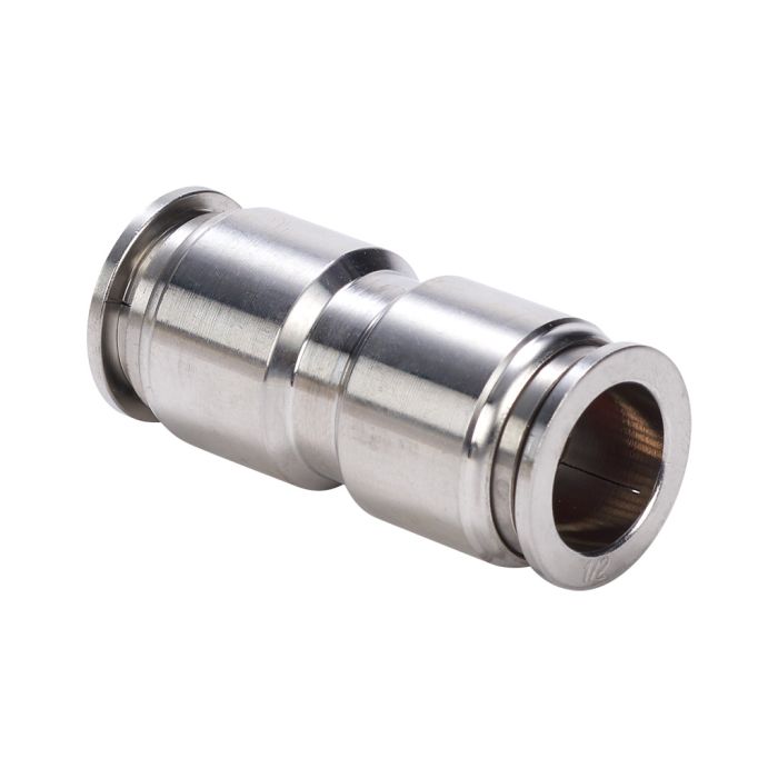 NITRA pneumatic push-to-connect fitting, union straight, 316 stainless steel body, (2) 1/2in tube connection(s).