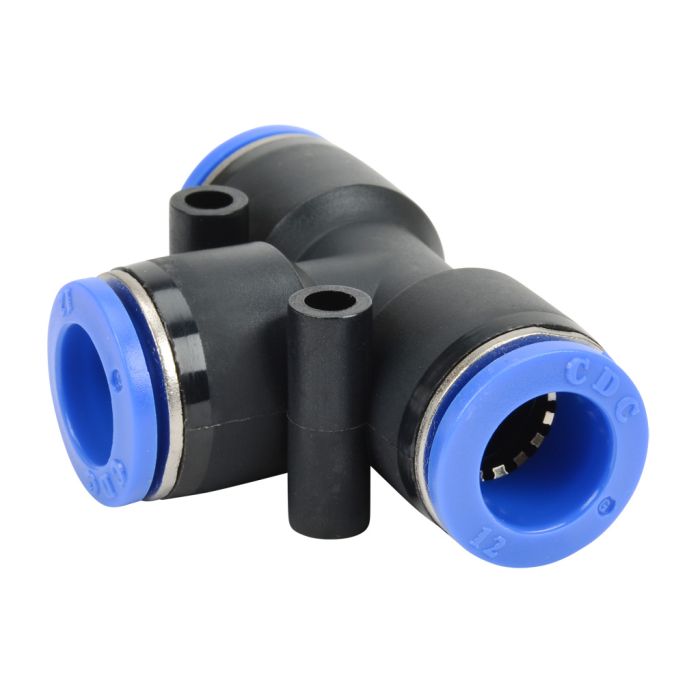 NITRA pneumatic push-to-connect fitting, union tee, thermoplastic (PBT) body, (3) 12mm tube connection(s). Package of 5.