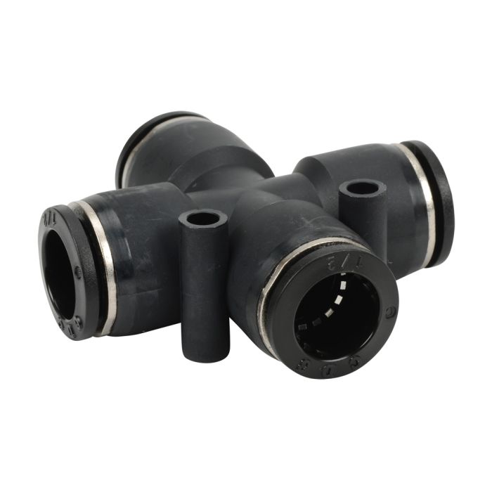 NITRA pneumatic push-to-connect fitting, union cross, thermoplastic (PBT) body, (4) 1/2in tube connection(s). Package of 5.