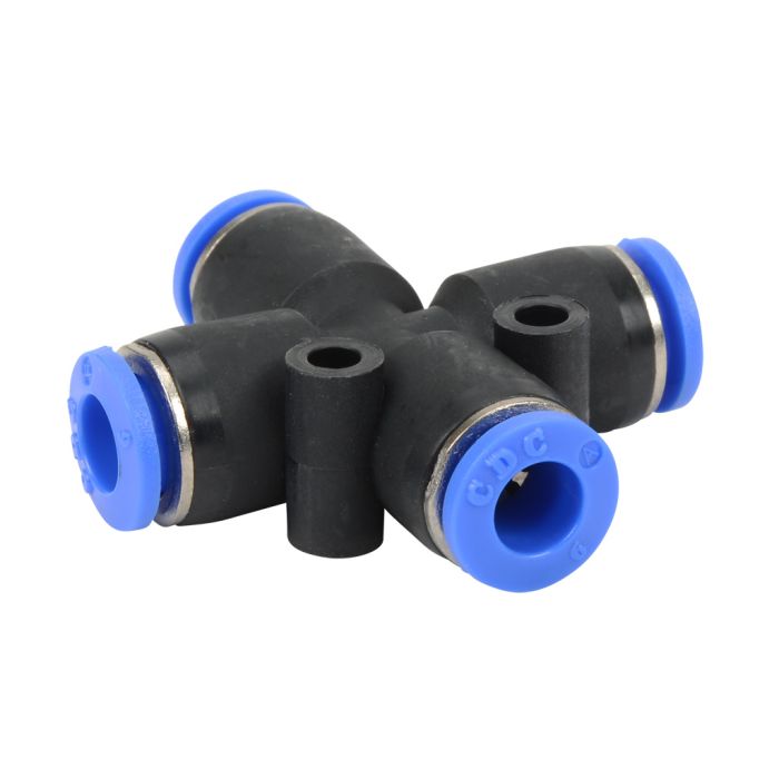 NITRA pneumatic push-to-connect fitting, union cross, thermoplastic (PBT) body, (4) 6mm tube connection(s). Package of 5.