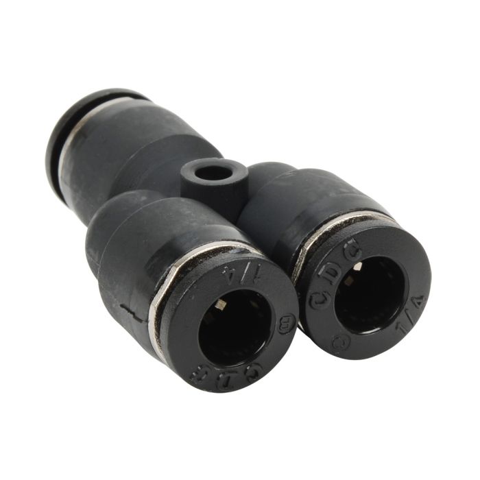 NITRA pneumatic push-to-connect fitting, union Y, thermoplastic (PBT) body, (3) 1/4in tube connection(s). Package of 5.