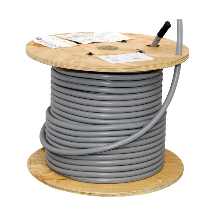 Flexible multi-conductor control cable, 12 conductors including green/yellow ground, 14AWG, black PVC/Nylon insulation, unshielded, gray jacket, 1000 foot reel.