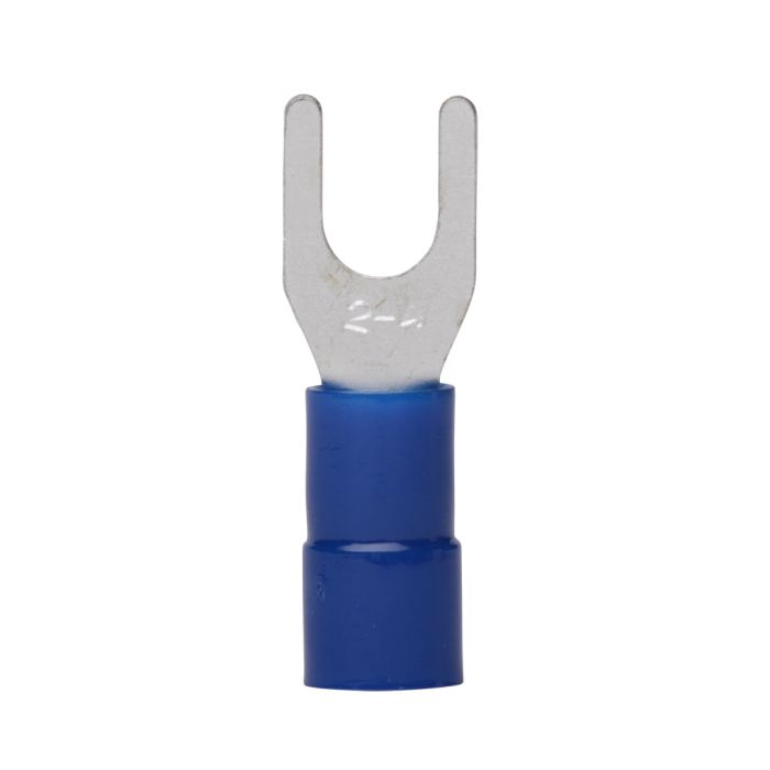 Z+F terminal, fork, 16-14 AWG, blue, PVC insulated, M4 stud. Package of 100.