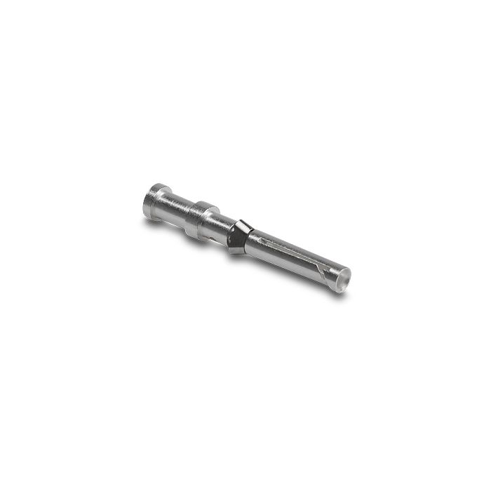 Machined crimp contact, female, 10 amp, 26 - 22 AWG (0.14 - 0.37 mm sq.), silver-plated copper alloy. 100 contacts per package.