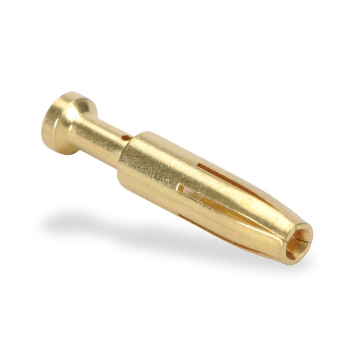 Machined crimp contact, female, 16 amp, 20AWG (0.5 mm sq.), gold-plated copper alloy. 100 contacts per package.