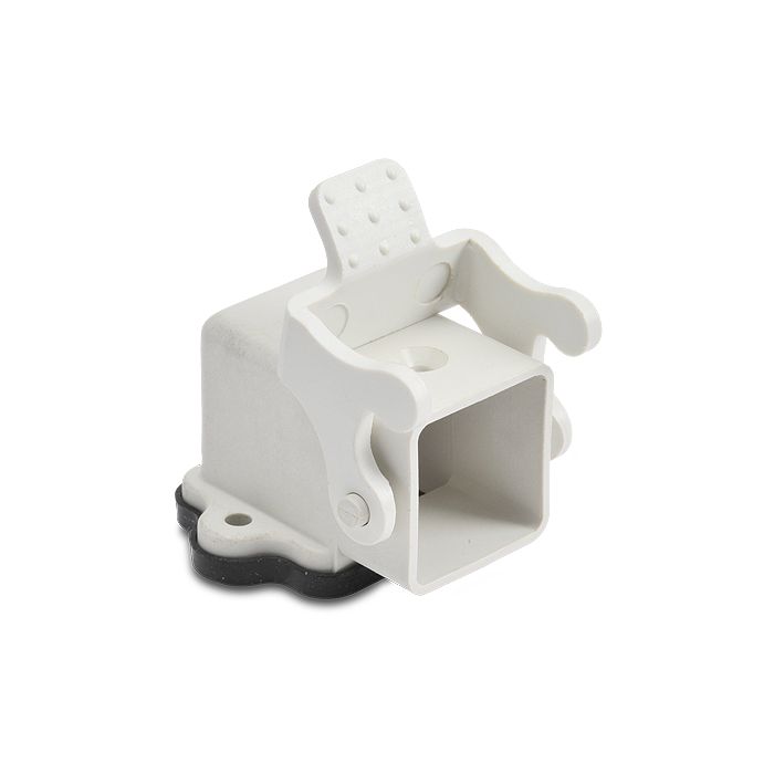 Base for ZIPport multi-wire industrial connector, size 3A, single lever, right angled bulkhead, thermoplastic.