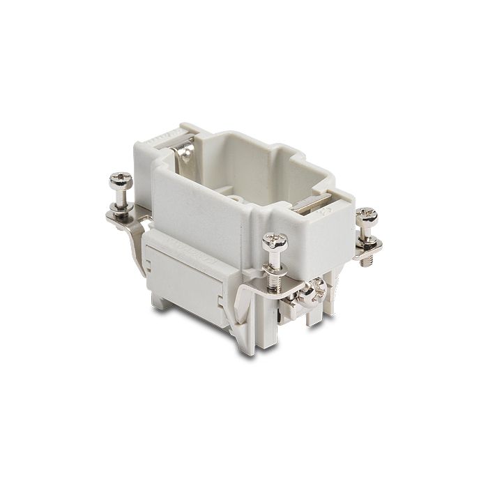 Male insert for ZIPport multi-wire industrial connector, size 6B, 6 poles plus ground connection, crimp contacts, 16 amp, 600 VAC/DC.