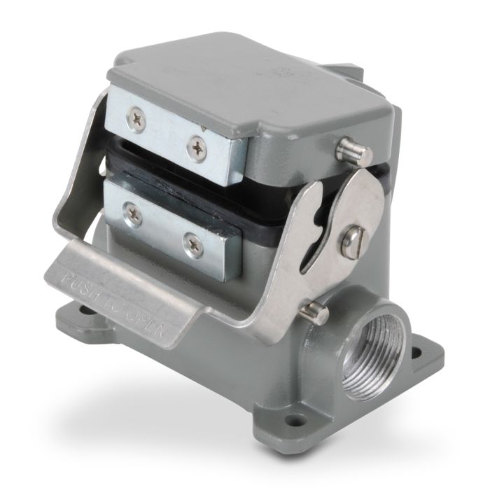 Base for ZIPport multi-wire industrial connector, size 6B, single lever, surface mount with automatic closing cover, (2) Pg 16 threaded holes, aluminum.