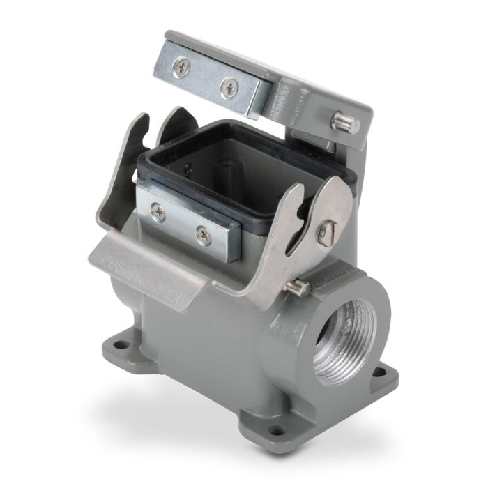 Base for ZIPport multi-wire industrial connector, size 6B, single lever, surface mount with automatic closing cover, (2) Pg 21 threaded holes, aluminum.