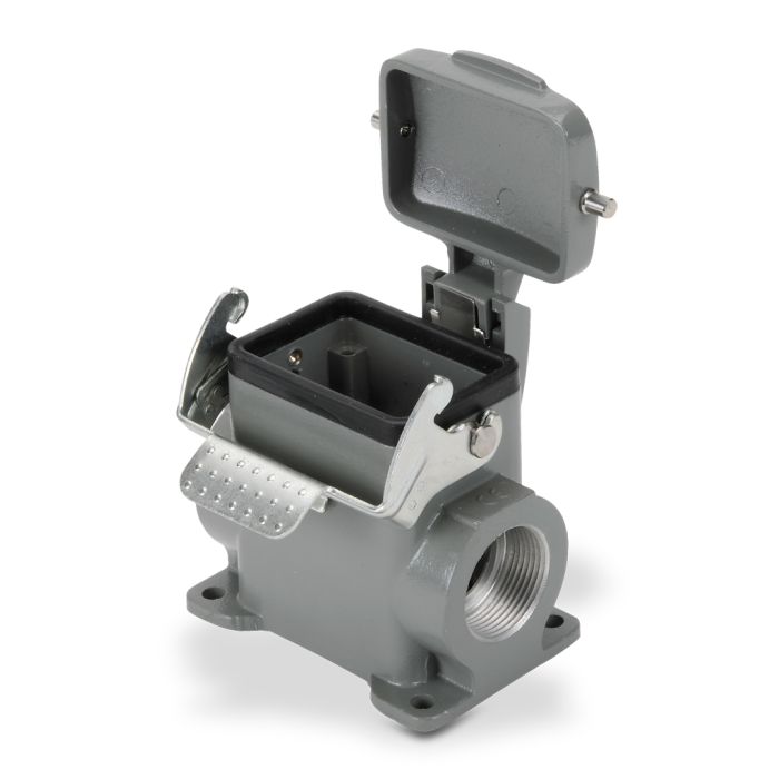 Base for ZIPport multi-wire industrial connector, size 6B, single lever, surface mount with cover, (2) Pg 21 threaded holes, aluminum.