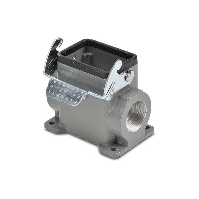 Base for ZIPport multi-wire industrial connector, size 6B, single lever, surface mount entry, (2) Pg 21 threaded holes, aluminum.