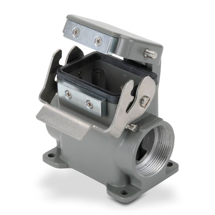 Base for ZIPport multi-wire industrial connector, size 6B, single lever, surface mount with automatic closing cover, (2) Pg 29 threaded holes, aluminum.