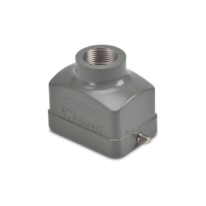 Hood for ZIPport multi-wire industrial connector, size 6B, 2-peg, top entry, (1) Pg 16 threaded hole, aluminum.