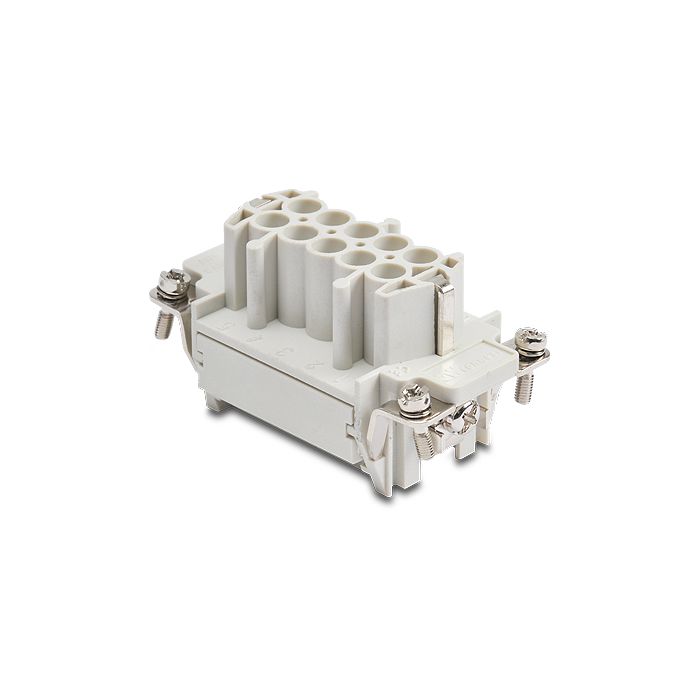 Female insert for ZIPport multi-wire industrial connector, size 10B, 10 poles plus ground connection, crimp contacts, 16 amp, 600 VAC/DC.