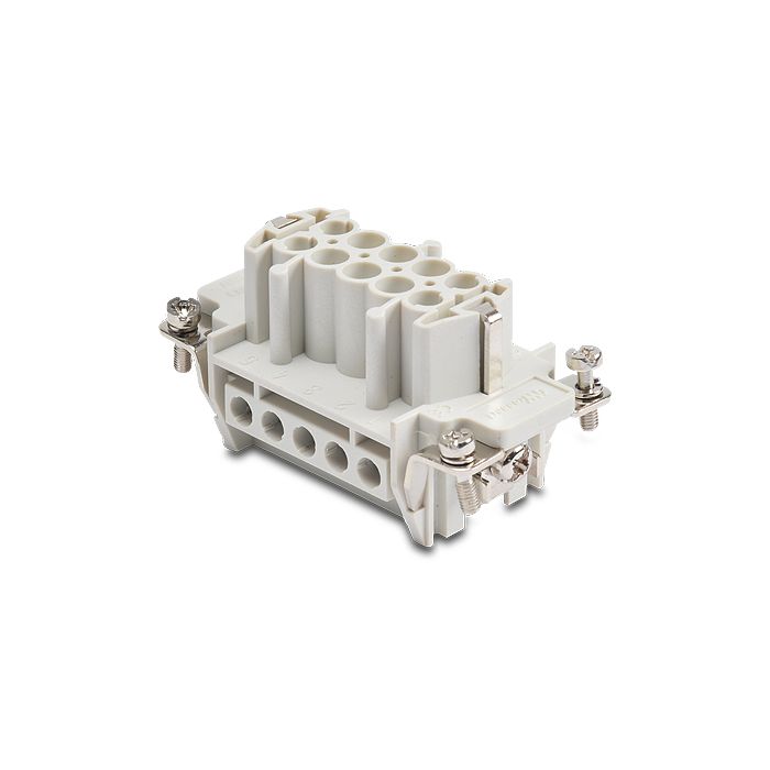Female insert for ZIPport multi-wire industrial connector, size 10B, 10 poles plus ground connection, screw terminals accept 20-12 AWG, 16 amp, 600 VAC/DC.