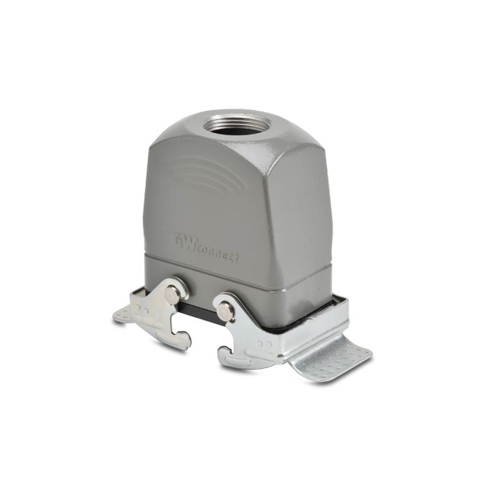 Coupler for ZIPport multi-wire industrial connector, size 10B, double lever, (1) Pg 21 threaded hole, aluminum.