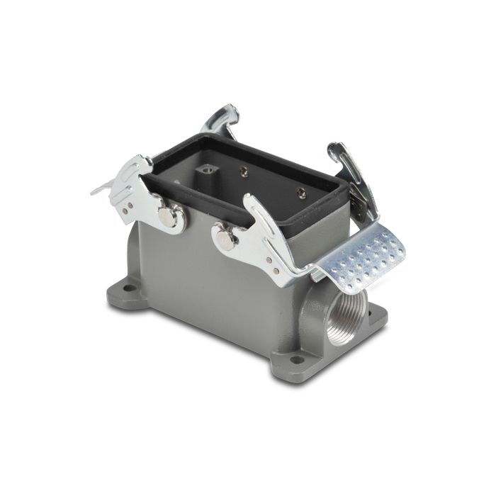 Base for ZIPport multi-wire industrial connector, size 10B, double lever, surface mount entry, (2) Pg 16 threaded holes, aluminum.