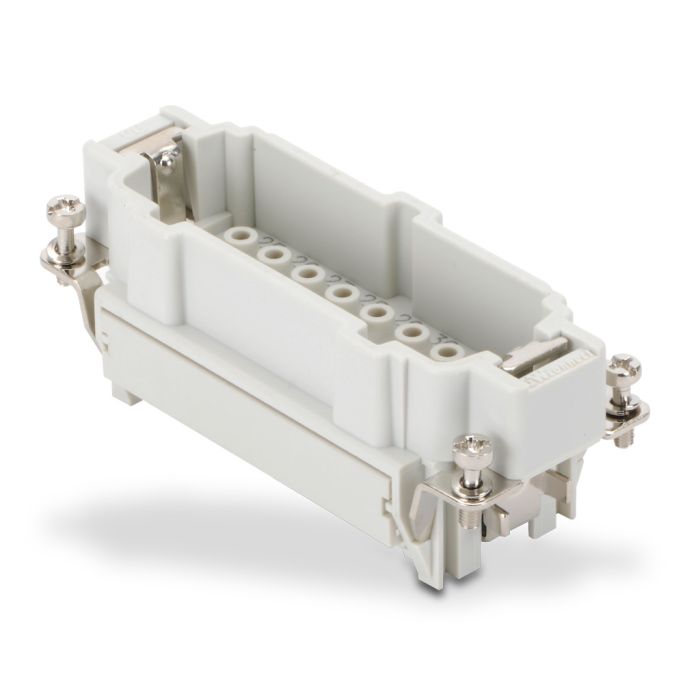 Male insert for ZIPport multi-wire industrial connector, size 16B, 16 poles plus ground connection, crimp contacts, 16 amp, 600 VAC/DC.