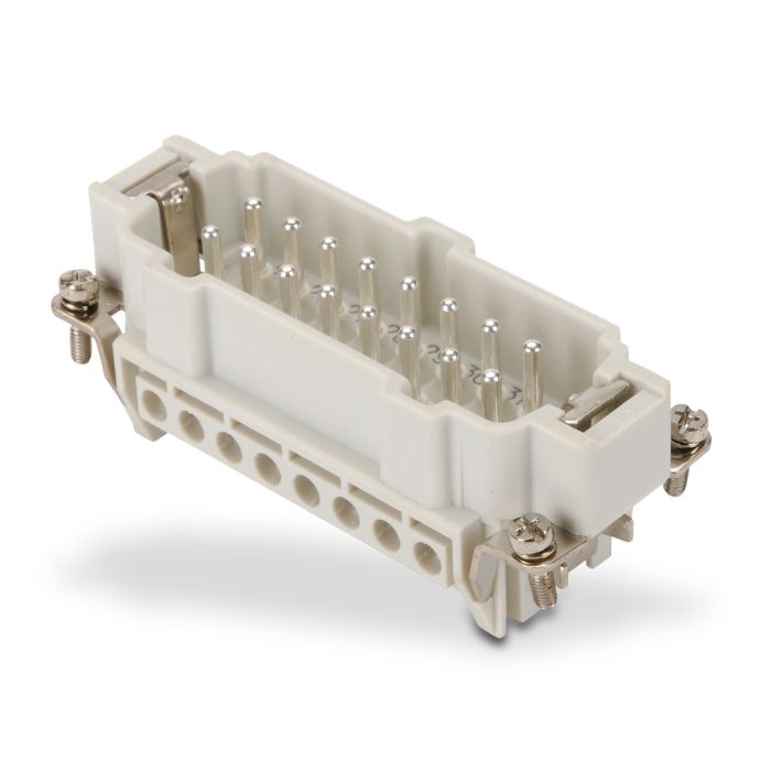 Male insert for ZIPport multi-wire industrial connector, size 16B, 16 poles plus ground connection, screw terminals accept 20-14 AWG, 16 amp, 600 VAC/DC.