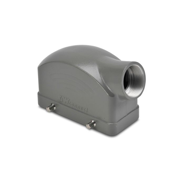 Hood for ZIPport multi-wire industrial connector, size 16B, 4-peg, side entry, (1) Pg 21 threaded hole, aluminum.