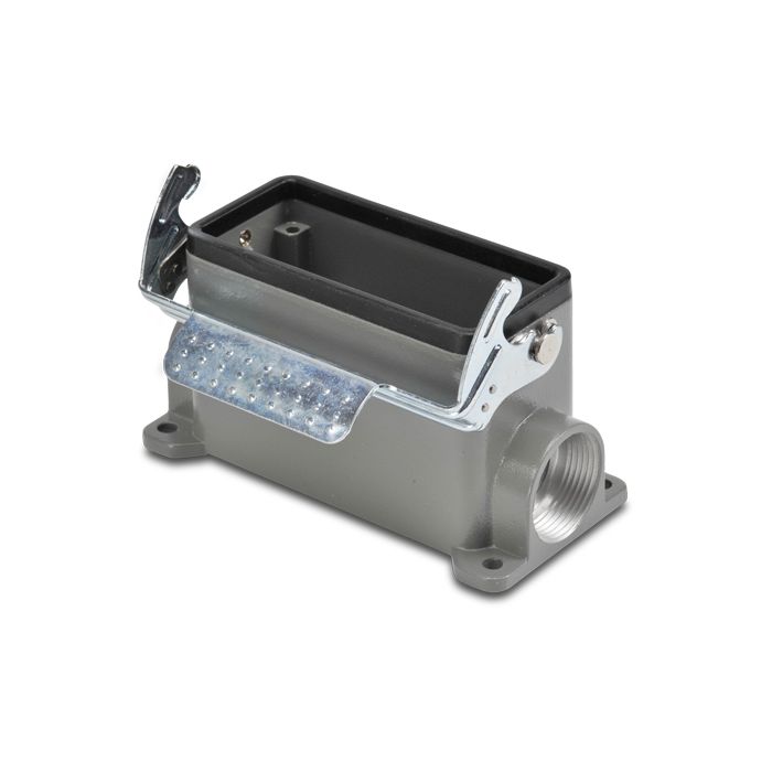 Base for ZIPport multi-wire industrial connector, size 16B, single lever, surface mount entry, (2) Pg 21 threaded holes, aluminum.