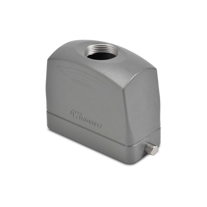 Hood for ZIPport multi-wire industrial connector, size 16B, 2-peg, top entry, (1) Pg 21 threaded hole, aluminum.