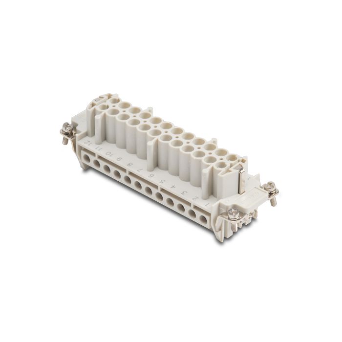 Female insert for ZIPport multi-wire industrial connector, size 24B, 24 poles plus ground connection, screw terminals accept 20-14 AWG, 16 amp, 600 VAC/DC.