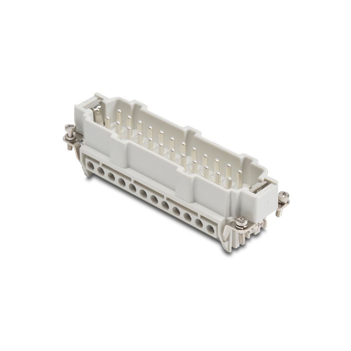 Male insert for ZIPport multi-wire industrial connector, size 24B, 24 poles plus ground connection, screw terminals accept 20-14 AWG, 16 amp, 600 VAC/DC.