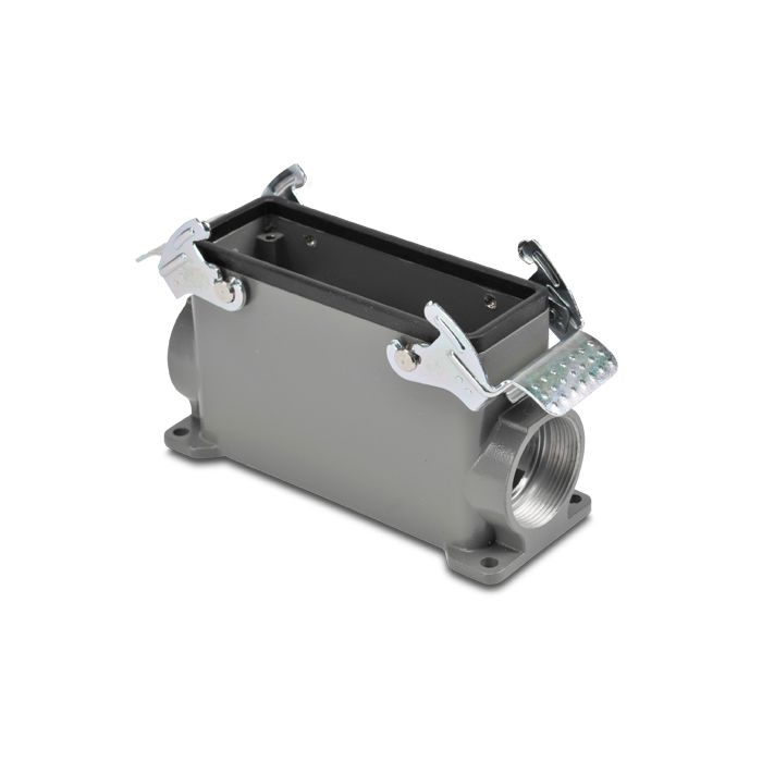 Base for ZIPport multi-wire industrial connector, size 24B, double lever, surface mount entry, (2) Pg 29 threaded holes, aluminum.