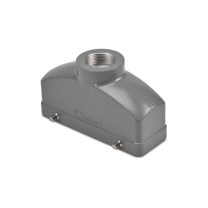 Hood for ZIPport multi-wire industrial connector, size 24B, 4-peg, top entry, (1) Pg 21 threaded hole, aluminum.