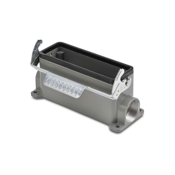 Base for ZIPport multi-wire industrial connector, size 24B, single lever, surface mount entry, (2) Pg 21 threaded holes, aluminum.