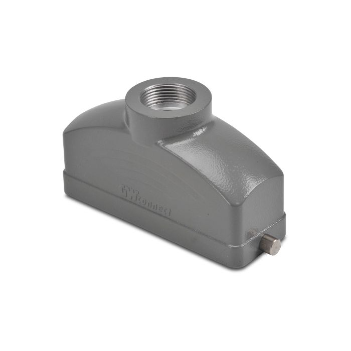 Hood for ZIPport multi-wire industrial connector, size 24B, 2-peg, top entry, (1) Pg 21 threaded hole, aluminum.