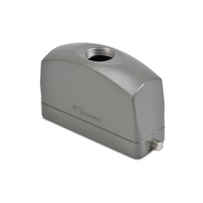 Hood for ZIPport multi-wire industrial connector, size 24B, 2-peg, top entry, (1) Pg 21 threaded hole, aluminum.