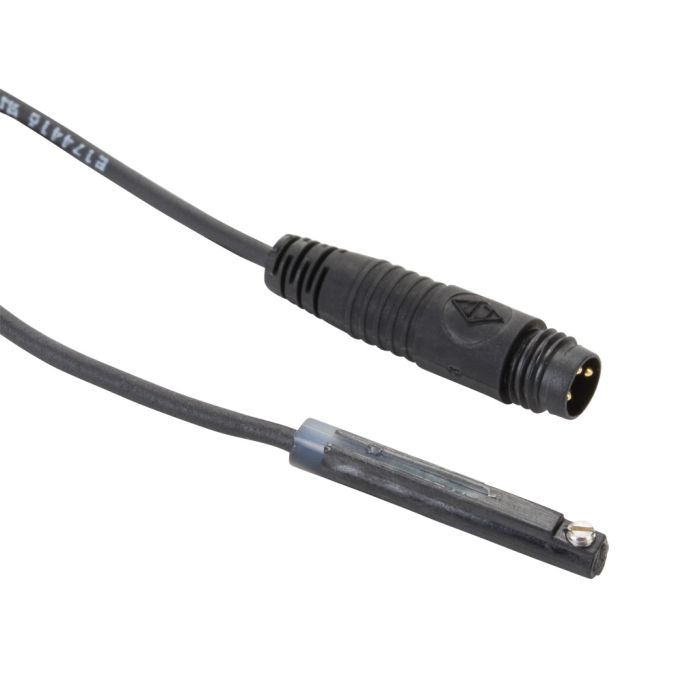 NITRA cylinder switch, round, NPN, N.O. output, 5-28 VDC operating voltage, LED indication, 0.5ft (0.15m) cable with 3-pin M8 snap-fit connector, 4mm round slot mount, for position sensing.