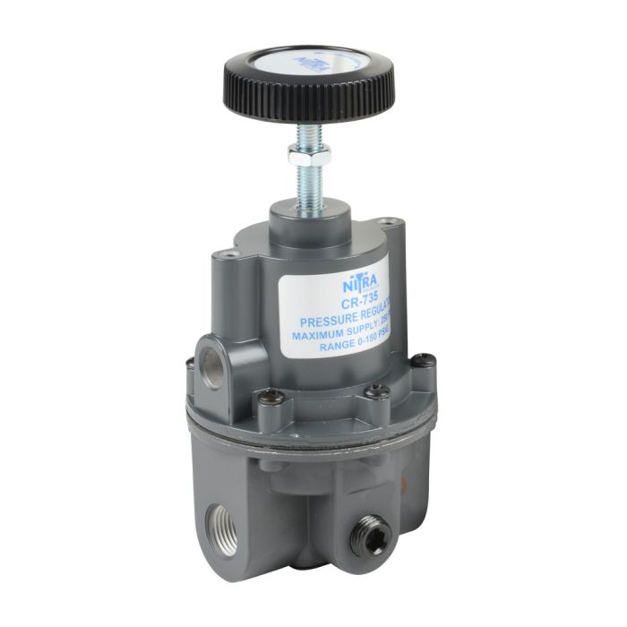 NITRA precision pneumatic regulator, 3/8in female NPT inlet(s), 3/8in female NPT outlet(s), 0-150 psi adjustable range.