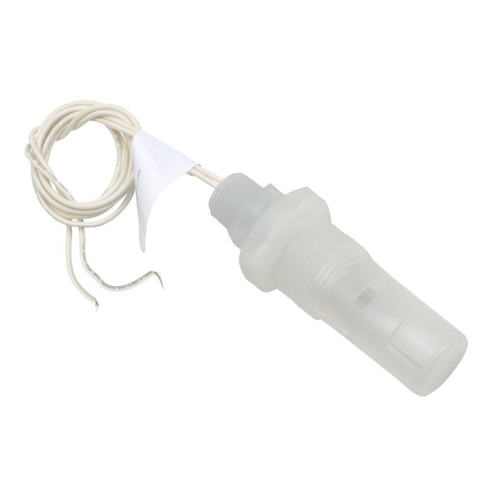 ProSense float level switch, side-mount, 2.84-inch insertion length, polypropylene slosh shield, float, and stem, 1 x 1/2 inch NPT male, SPST, 24-inch lead wires.