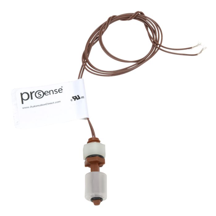 ProSense float level switch, top-mount, 0.58-inch diameter, polypropylene float, polypropylene stem, 3/8-16 UNC male, SPST 15W, 24-inch lead wires.