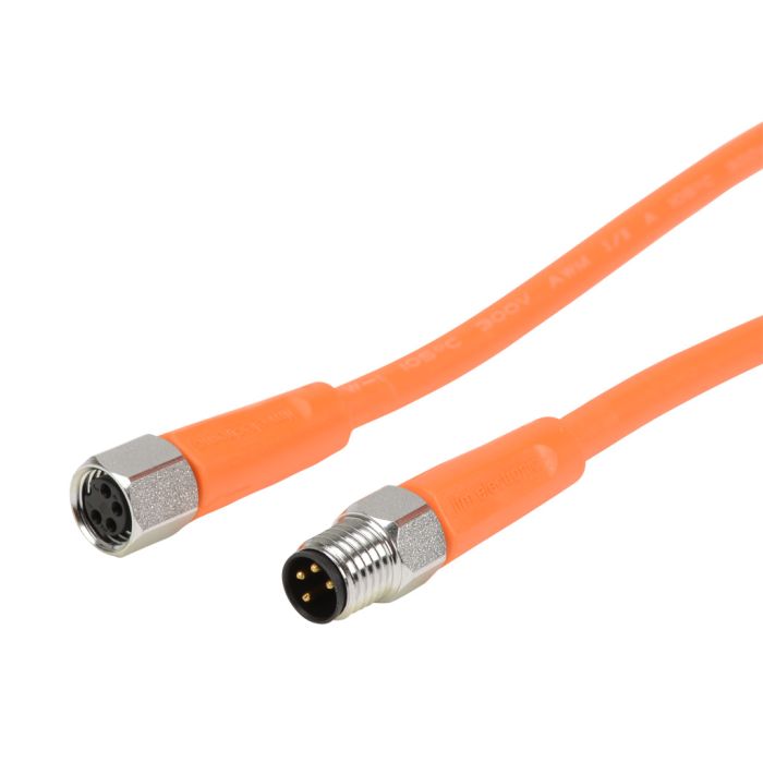 Patch cable, M8 axial female to axial male, 4-pole, PVC jacket, orange, 1.9ft/0.6m cable length, IP65, IP67, IP68 and IP69K, suitable for food and beverage applications.