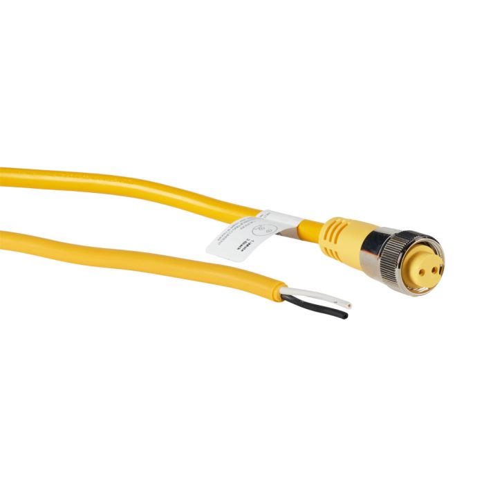 ZIPport cordset cable, 7/8in - 16 UN2 thread nut 2-pin female axial to pigtail with North American color code, PVC outer jacket, yellow, nickel-plated brass connector, 19.6ft/6m cable length, IP67.