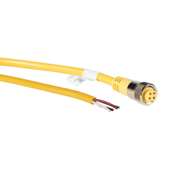 ZIPport cordset cable, 7/8in - 16 UN2 thread nut 4-pin female axial to pigtail with North American color code, PVC outer jacket, yellow, nickel-plated brass connector, 6.5ft/2m cable length, IP67.