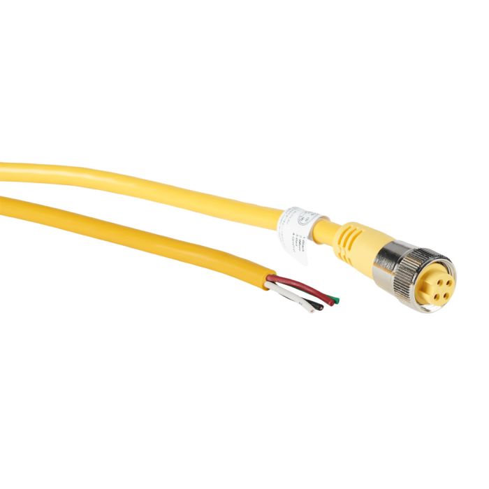 ZIPport cordset cable, 7/8in - 16 UN2 thread nut 4-pin female axial to pigtail with North American color code, PVC outer jacket, yellow, nickel-plated brass connector, 19.6ft/6m cable length, IP67.